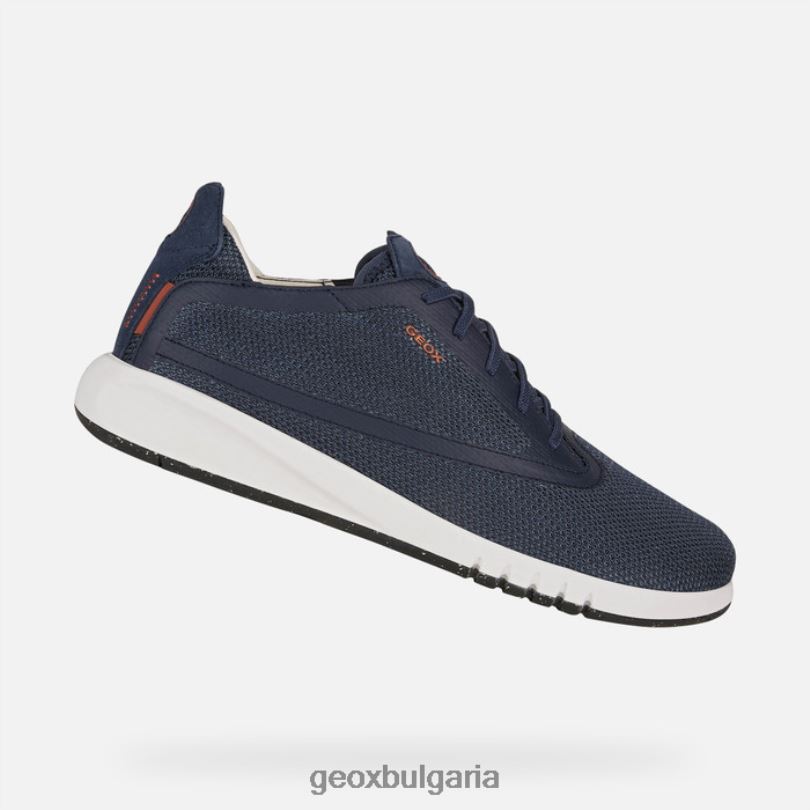 мъжки ултра-дишащи маратонки с ниско деколте, предлагащи перфектна комбинация от технология и стил. отразявайки ангажимента на Geox към околната среда, aerantis може да се похвали с горна част, изработена от рециклирана мрежа в наситено военновъздушно синьо (raf). иновативна супер удобна обувка, която лесно ще се съчетае с небрежни ежедневни тоалети.