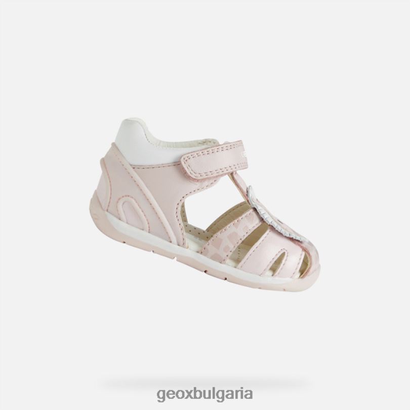 универсален сандал за първи стъпки за момиче, изпълнен с небрежен стил. всеки е сандал със затворени пръсти, изработен от напа и материал с ефект на кожа в бледорозово-бял цвят, създаден, за да осигури безопасност и стабилност на малките деца, когато започнат да ходят. с неустоимо жизнерадостна и лесна за съчетаване естетика, тази част от обувките предлага дишане, комфорт, защита и гъвкавост. той е допълнително издигнат със сладка животинска украса.