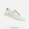 дамски изцяло устойчиви маратонки със стил на тенис корт, проектирани като част от партньорството между geox и acbc, водеща компания на пазара на зелени обувки. изработена от материал с ефект на изтъркана кожа и платно, тази прасковено-розово-бяла версия ще омекоти съвременния, небрежен и спортен стил с нотка на женственост. всяка една част от тази обувка е направена от рециклирани материали на органична основа и без животински произход. jaysen се предлага с два различни комплекта връзки: единият е 100% рециклируем от влакна от юта, а другият е от реботилия, материал, получен от рециклирани бутилки за домашни любимци.
