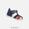сандали за първа стъпка за малко дете, със защитен и удобен дизайн. със затворени пръсти и пета, сандалът elthan има идеалната форма за защита на краката на малките деца, когато започнат да изследват. той е лесен за обличане и коригиране, изработен от материал с ефект на набук и платно и включва комбинация от тъмносиньо и кралско синьо, така че лесно да се съчетава с ежедневни тоалети.
