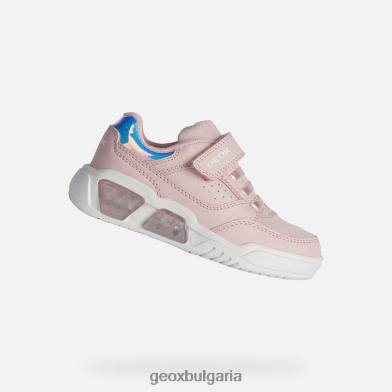 удобни, омекотяващи юношески маратонки със спортна, енергична естетика. тази бледорозова и бяла версия на illuminus се отличава с горна част, изработена от материал с ефект на изтъркана кожа и лъскава материя и се отличава със своя активен стил. светлините, вградени във външната подметка, ще заредят незабавно батериите на децата и ще се погрижат те да превземат деня като буря.