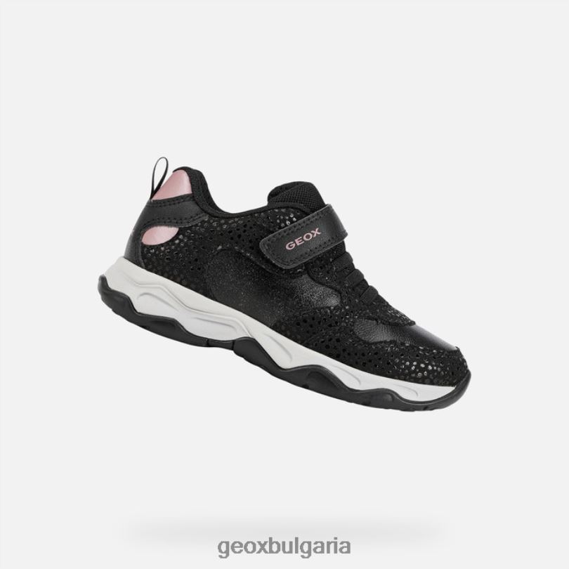 дишащи маратонки за момиче с небрежен дизайн на маратонки, подсилен с ултра-женствени акценти. може да се похвали с черна горна част с розови нотки, изработена от материал с кожен ефект и щампован велур. идеален за училище и за развлекателни дейности с нейните най-добри приятели, calco е проектиран да осигури омекотяване, опора и пълен комфорт.