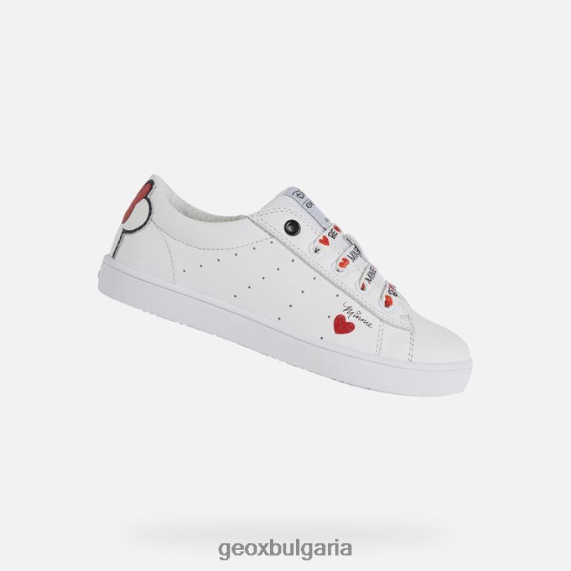 ниски маратонки за момичета, изработени от еластична напа и посветени на Мини Маус. продукт на партньорството между geox и disney, kathe може да се похвали със серия от красиви детайли, които черпят вдъхновение от сладката мишка в световноизвестните анимационни филми. представен в бяло-червен цвят, той е пълен със свеж ярък стил и ще извлече най-доброто от спортните ежедневни тоалети. създаден за малки момичета с натоварен начин на живот, той предлага максимален комфорт и може да се носи от сутрин до вечер.