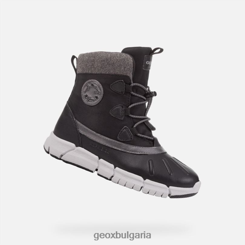 момичешки предпазни водоустойчиви ботуши-перфектният партньор за студения зимен сезон. скъпоценен съюзник в мразовитите зимни дни, flexyper abx е удобна, удобна обувка за глезена, надарена с водоустойчива технология и поставена върху гъвкава иновативна външна подметка. заредена със спокоен стил и енергизирана с активно настроение, тази версия, изработена от материал с ефект на кожа и найлон в черна палитра, е удобна за носене сега/по-късно част, която ще бъде перфектно съчетана с ежедневието на открито тоалети.