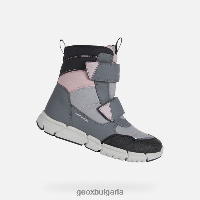 защитни водоустойчиви юношески ботуши-перфектният партньор за студения зимен сезон. скъпоценен съюзник в мразовитите зимни дни, flexyper abx е удобна, удобна обувка за глезена, надарена с водоустойчива технология и поставена върху гъвкава иновативна външна подметка. заредена със спокоен стил и енергизирана с активна атмосфера, тази сиво-розова версия от найлон с акценти от материал с ефект на кожа е удобно за носене сега/по-късно носене, което ще бъде перфектно съчетано с ежедневието на открито тоалети.