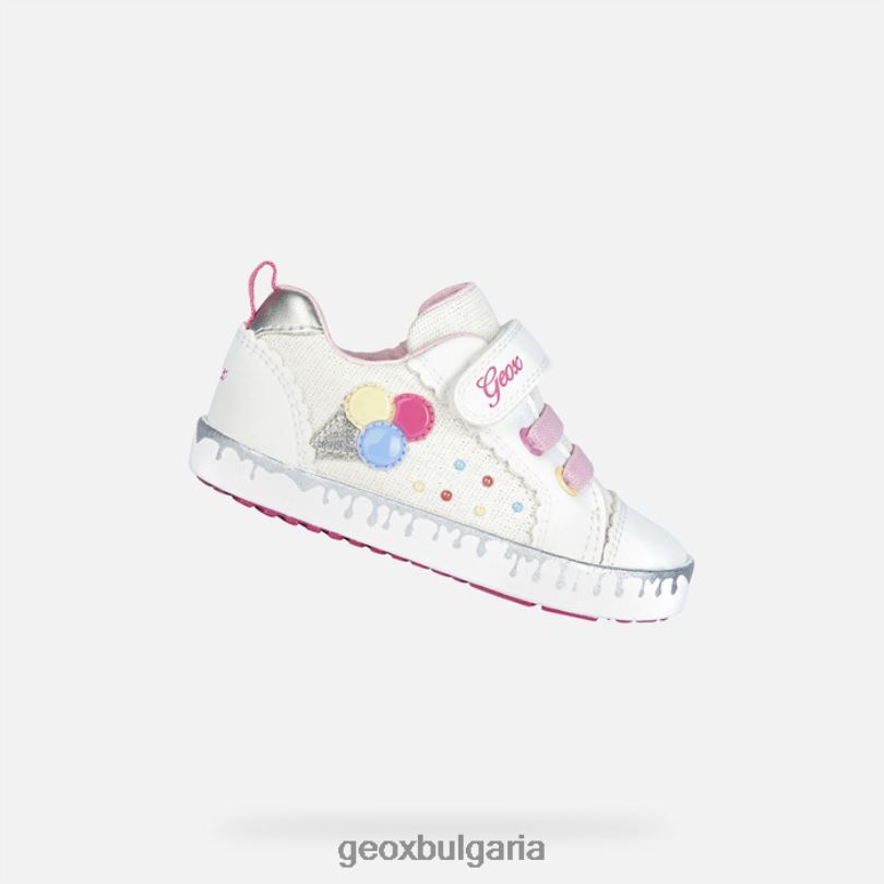 леки удобни маратонки с ниско деколте за момичета с прохладна забавна естетика. бялата горна част от платно с висок блясък и материал с ефект на кожа е украсена с летни щампи и многоцветни детайли. предназначен за малки крачета, които са постоянно в движение, kilwi ще допълни спортно-ежедневните тоалети с женствена нотка.