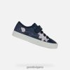 юношески маратонки със средна кройка с прилепнал водоустойчив дизайн и естетика в туристически стил. горната част е изработена от материал с ефект на кожа и найлон и е изпълнена в разнообразна тъмносиня и избеляла синя палитра. удобен и защитен, magnetar abx е проектиран за дейности на открито и студено дъждовно време.